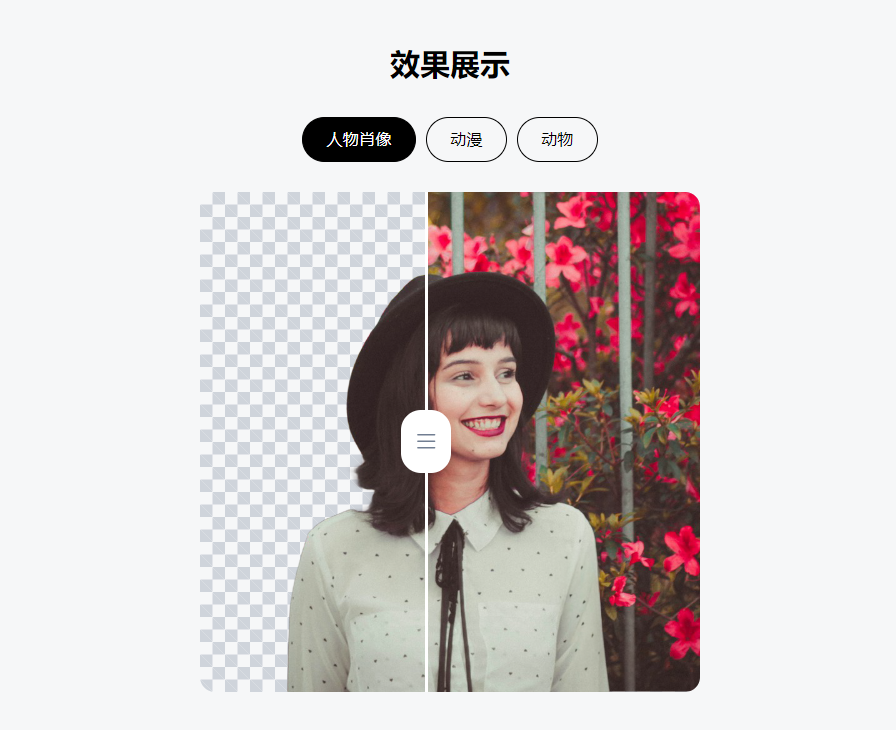 免费在线 AI 抠图工具「0v0」提供了三种抠图方式,分别是人物、动漫、动物。