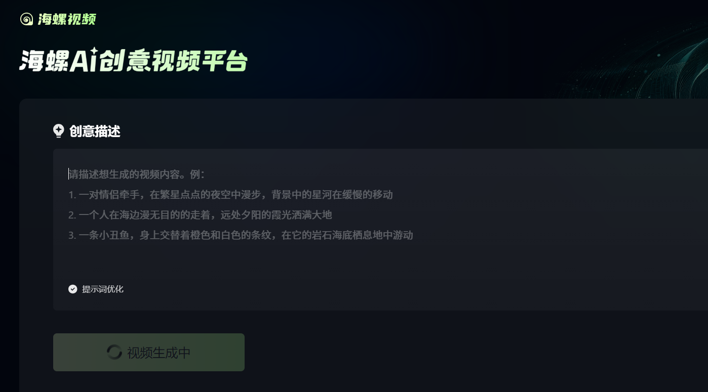 首先,让我们看看视频生成大模型。你只需输入一些简单的创意描述词,这款工具就能在短短几分钟内为你生成高分辨率、高帧率的原生视频