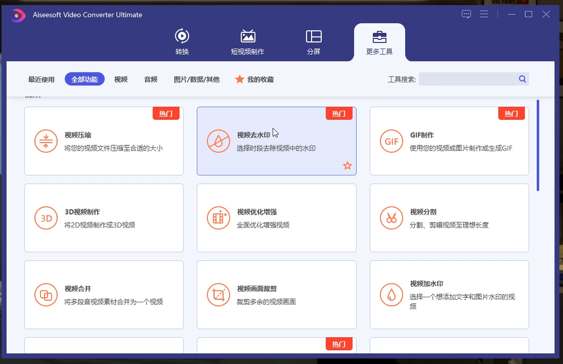 • 软件免费使用,支持视频格式转换,分辨率提升、视频去水印等操作