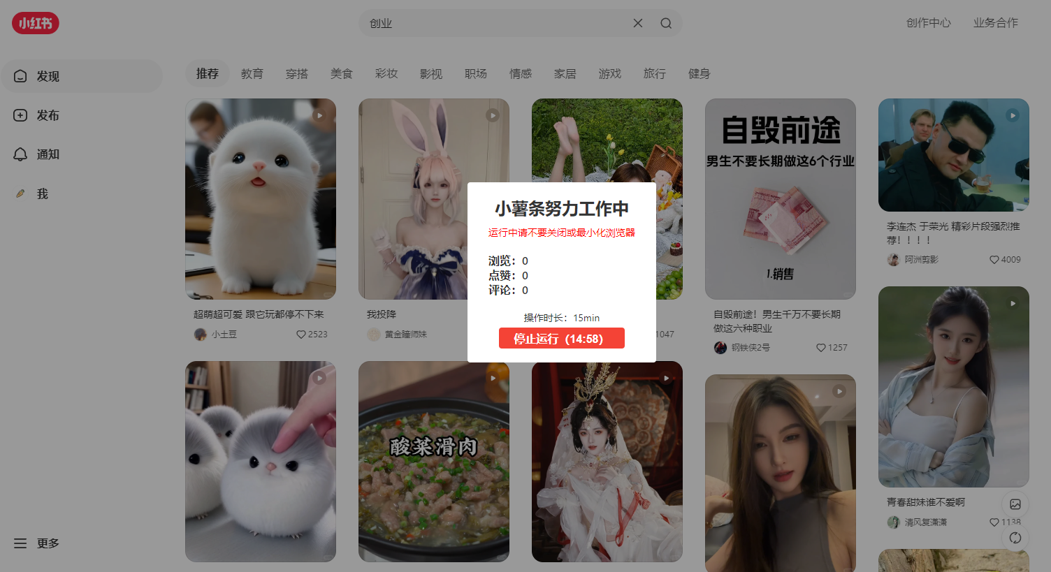 2. 自动点赞:在浏览图文时,小薯条会随机对内容进行点赞,增加互动,吸引更多用户关注您的账号。