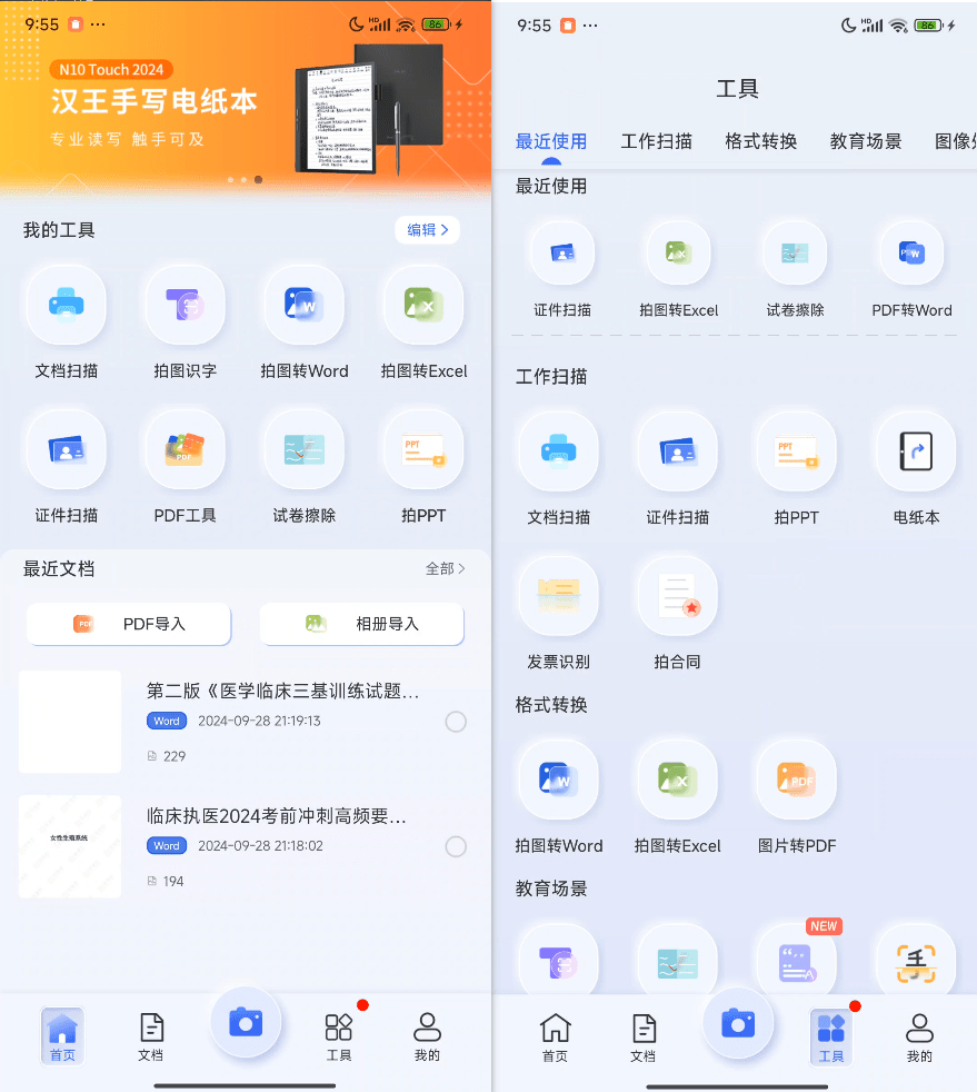 • 支持安卓手机,支持文档扫描、拍图识字、证件扫描、文字识别、试卷擦除等功能