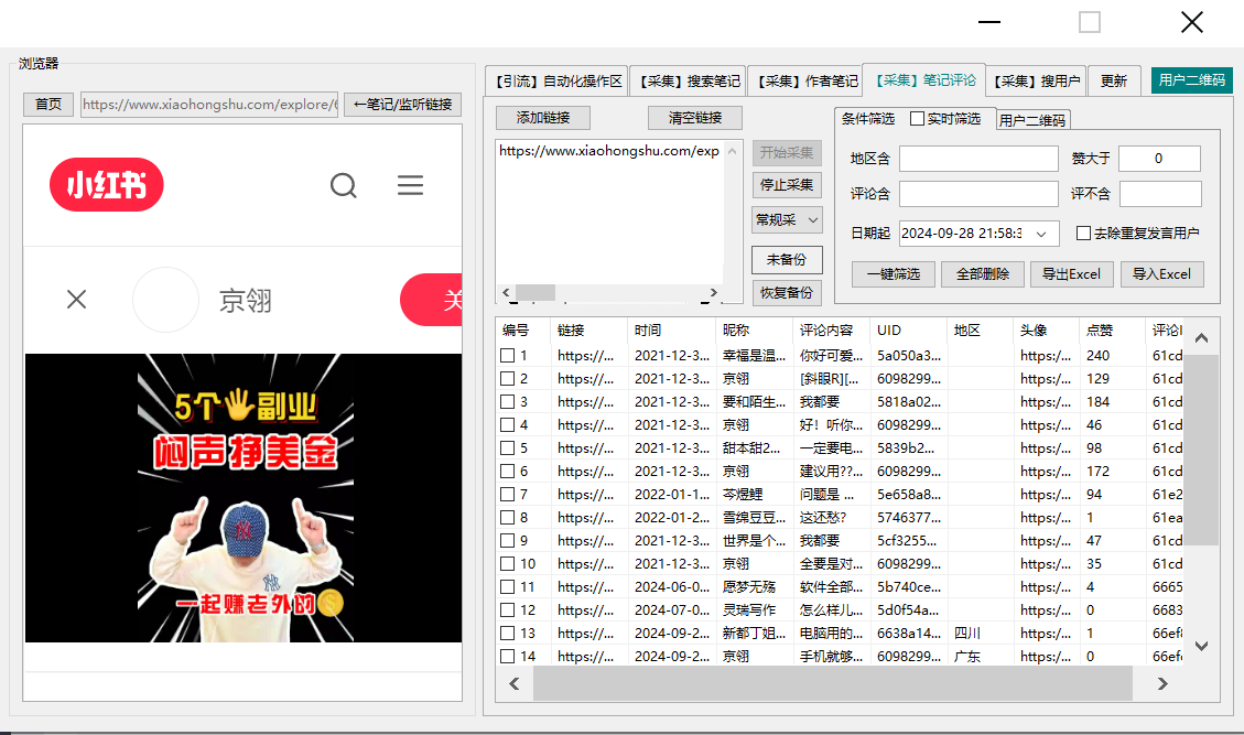 - [采集] 笔记评论:抓取笔记下的互动评论,捕捉粉丝信息。