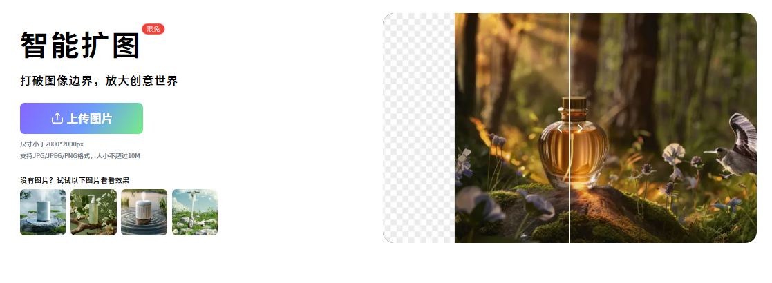 这是美间出品的一款Ai智能扩图工具,纯免费使用,无广告,输入图片点击生成即可一键扩充图片,可以弥补PS无法使用扩图的缺陷,在数字艺术和视觉设计领域,图像的扩展和放大是常见的需求。可以提高生产效率!