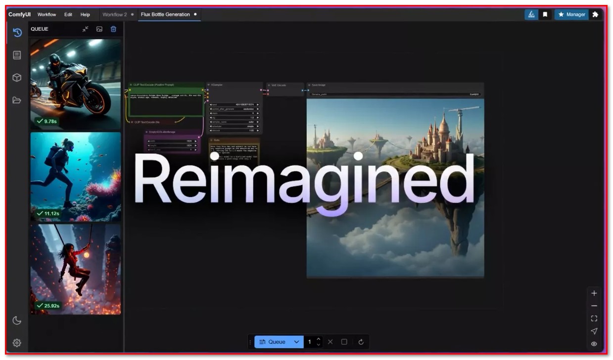 全新界面 – 模板工作流/节点模糊搜索 – 侧边菜单栏:Queue 队列记录、模型库、节点库 – 非桌面版也可立刻体验,更新最新版本即可