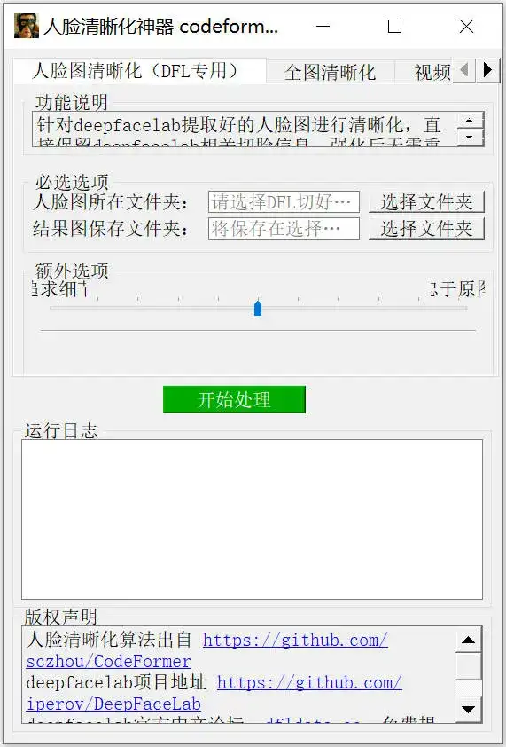 从软件界面来看,它的使用方法是非常简单的,也就是添加需要处理的图像文件夹和输出文件夹,然后设置保留细节,也就是处理力度,开始运行即可。