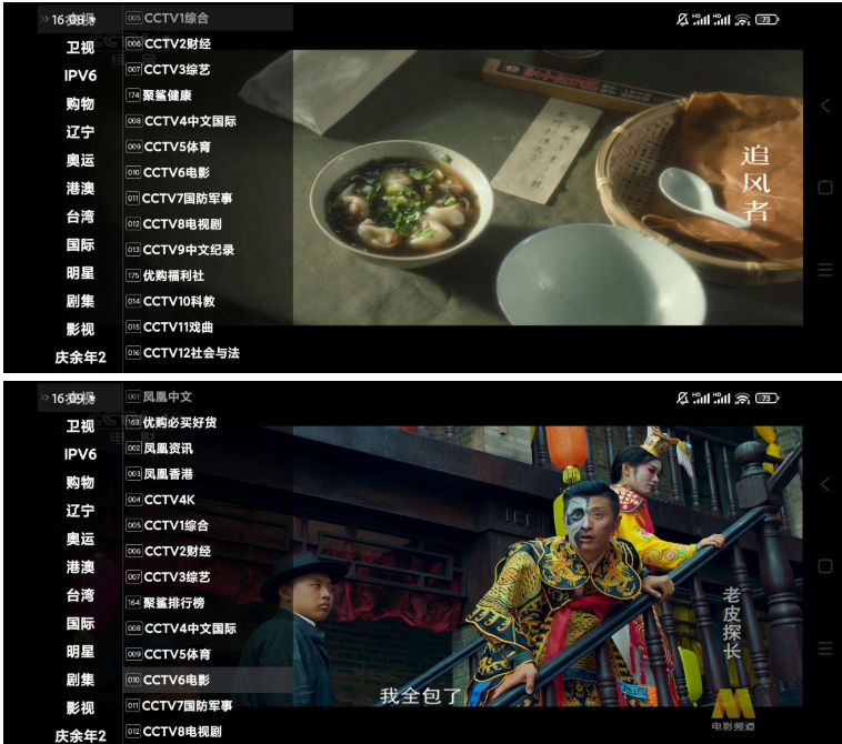 3.央视、卫视、地方、体育、影视、动漫等频道应有尽有
