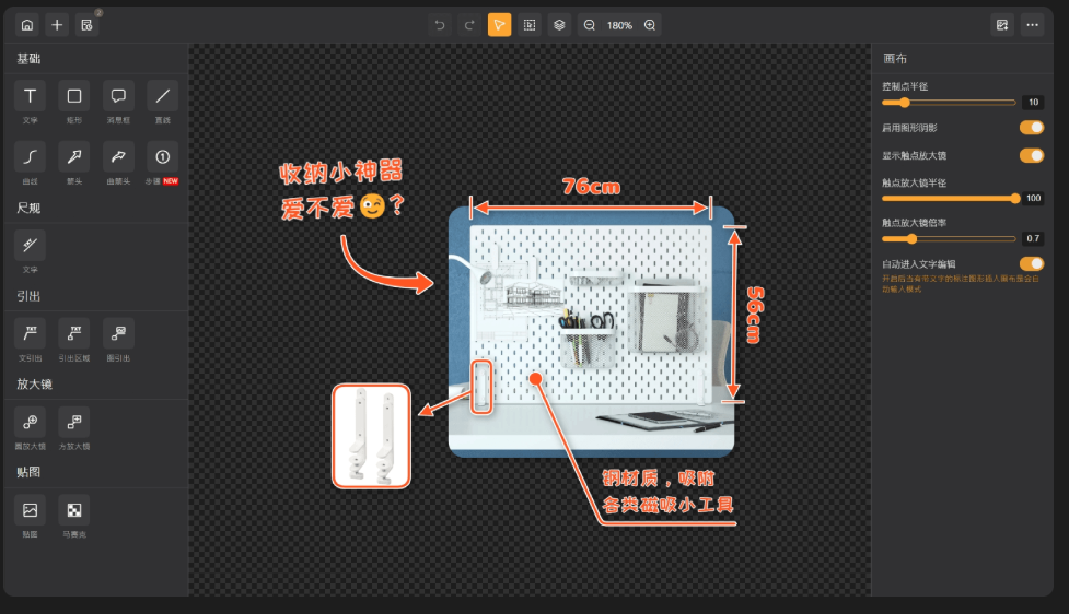 在操作上,它注重便捷性,采用简洁的交互设计,减少用户操作步骤,并提供无限画布,使用户可以专注于标注本身。导出方面,轻快标图支持多种方式,既可以导出完整画布,也可以单独选择特定标注进行导出,并可选择导出到文件或切板。轻快标图力求以简洁易用的方式,提供强大的图片标注功能。