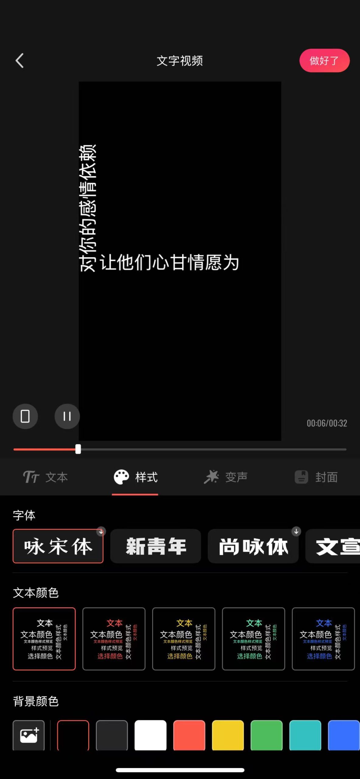 可以使用视频提取字幕 也可以用录音 如果不想用自己的声音 就随便去剪映输入个文本 配音下 导出并让快影使用即可,可以对文字进行编辑颜色 更换背景等