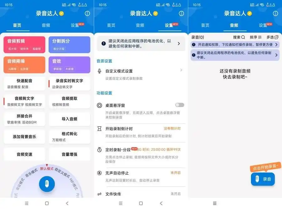 【应 用 介 绍】:录音达人是一款专业的录音与音频编辑应用,无需登录,安装就是高级特权,所有功能无限制使用软件支持会议、HIFI、音乐、采证等录音模式,还支持边录边转文字、配音、剪辑、音频格式转换等功能