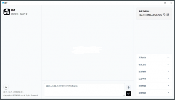 支持一键复制共享地址、支持手机二维码扫描、支持拖拽文件上传、支持图片预览