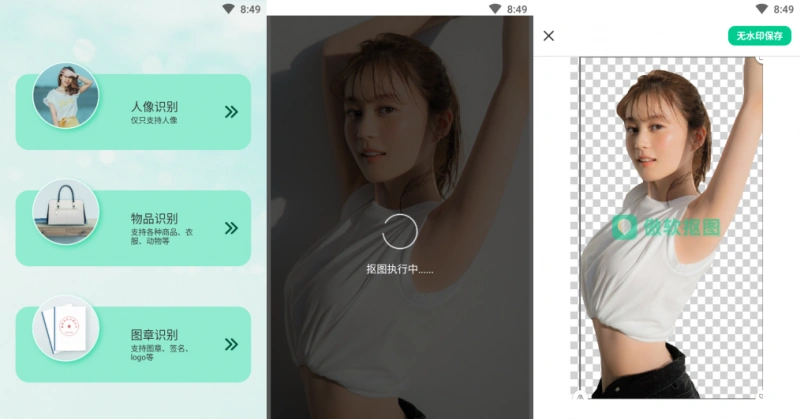一款超级好用的手机抠图软件。软件中为用户提供了一键抠图、一键白底图、AI消除笔、人像变清晰、创意背景等功能,让抠图变得非常简单,处理效果也很自然。