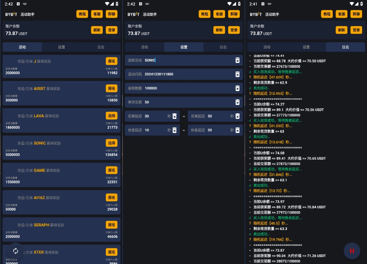软件全自动刷交易量,自动获取by活动地址,活动代码