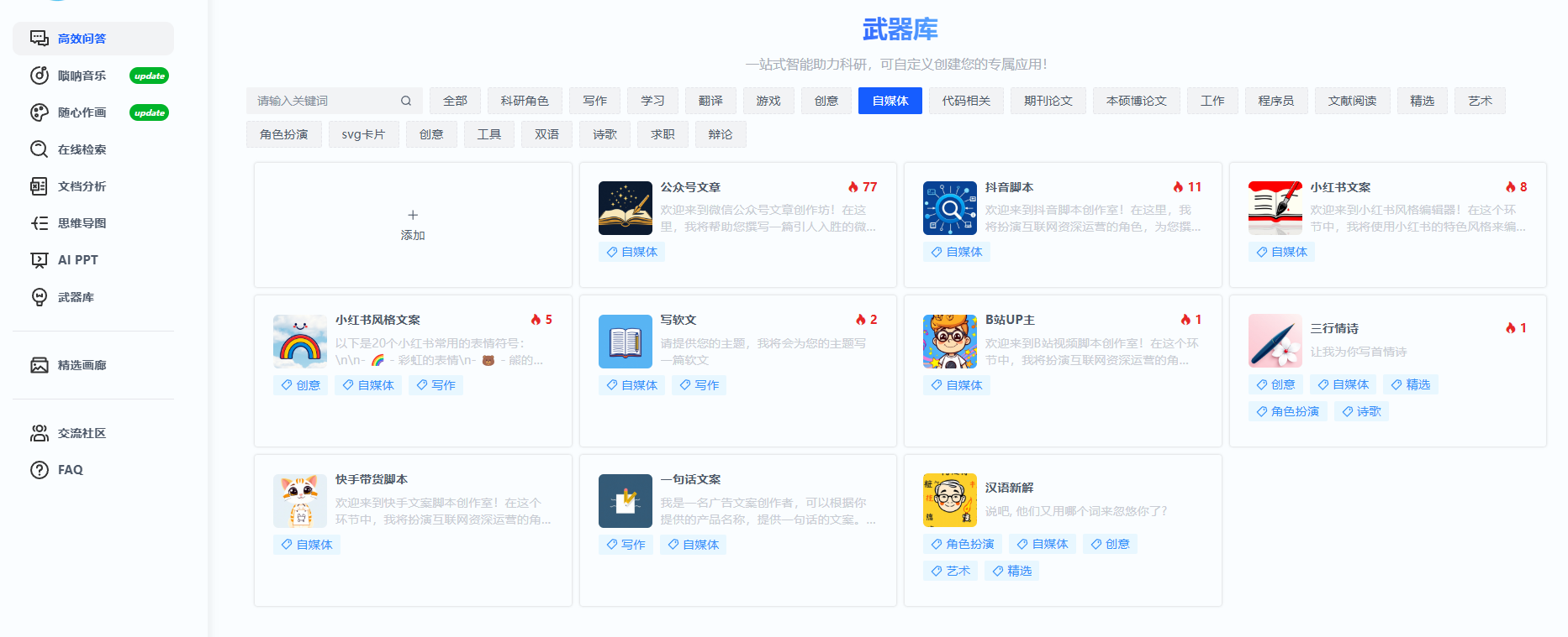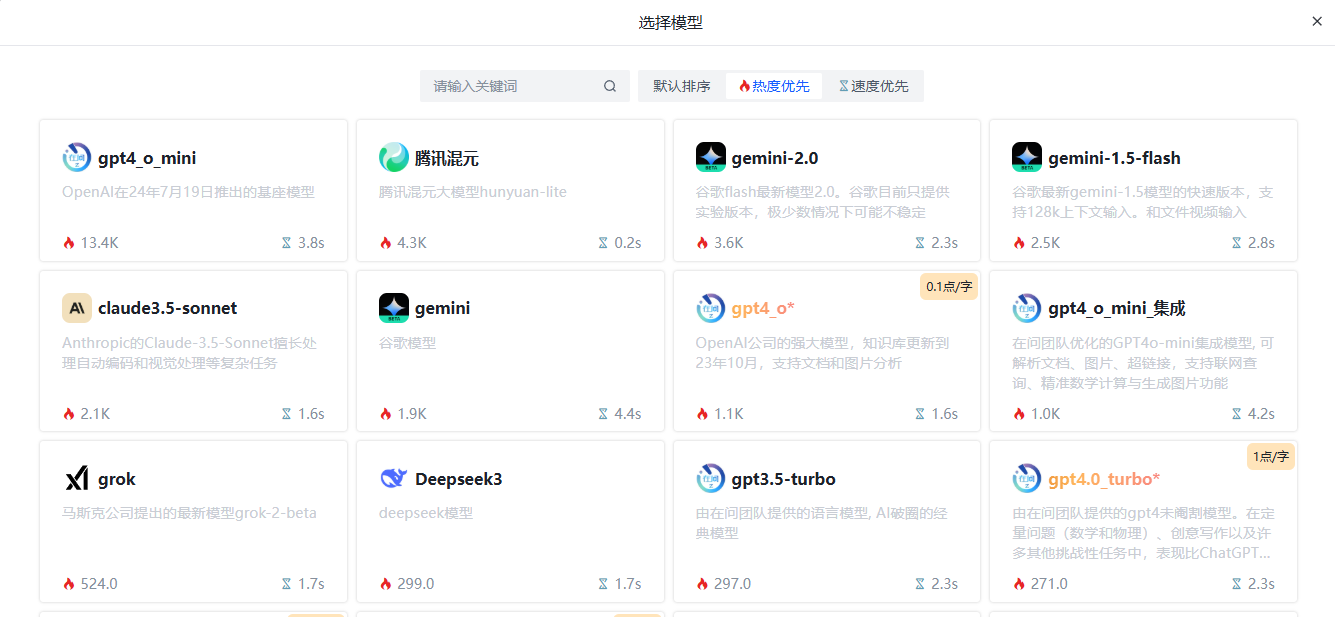 高效问答:可以选择您想要的模型种类,直接与不同模型(如ChatGPT, 4.0,claude,chatglm等)进行聊天和提问,默认模型为ChatGPT