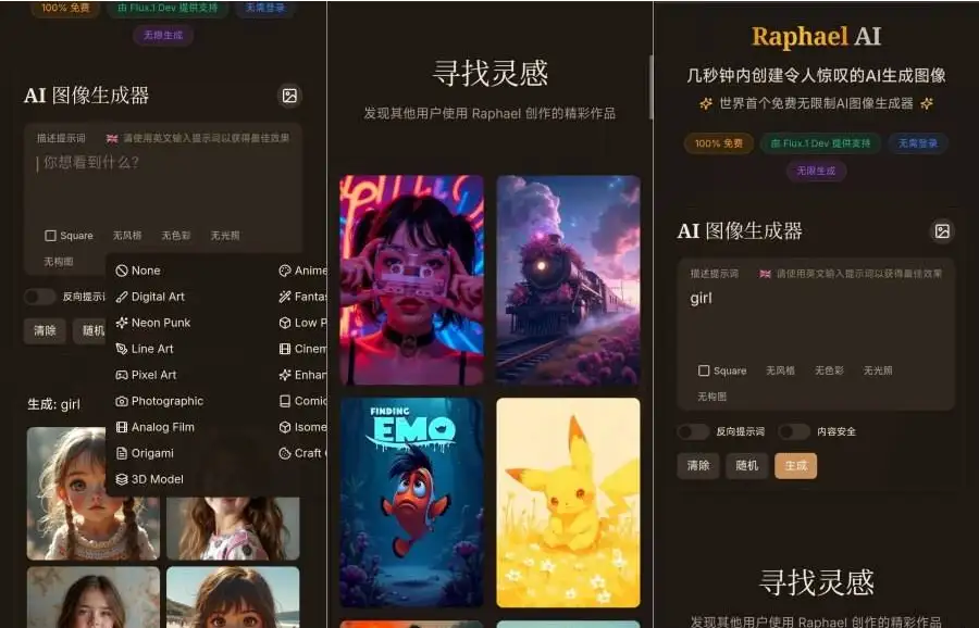 世界首个免费无限制的AI图像生成器,能够快速生成图像,没有任何广告干扰,不需登录即可使用,不限次数。