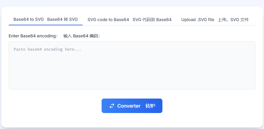- 只需粘贴Base64字符串到转换框中,即可自动生成SVG图像,直接在浏览器预览。