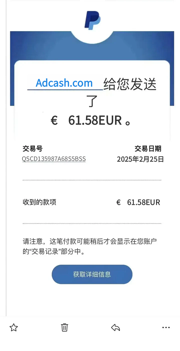 • 🌍 国际收益:利用Adcash平台挂机赚取欧元,外汇优势明显,每1欧元约兑7.6人民币。