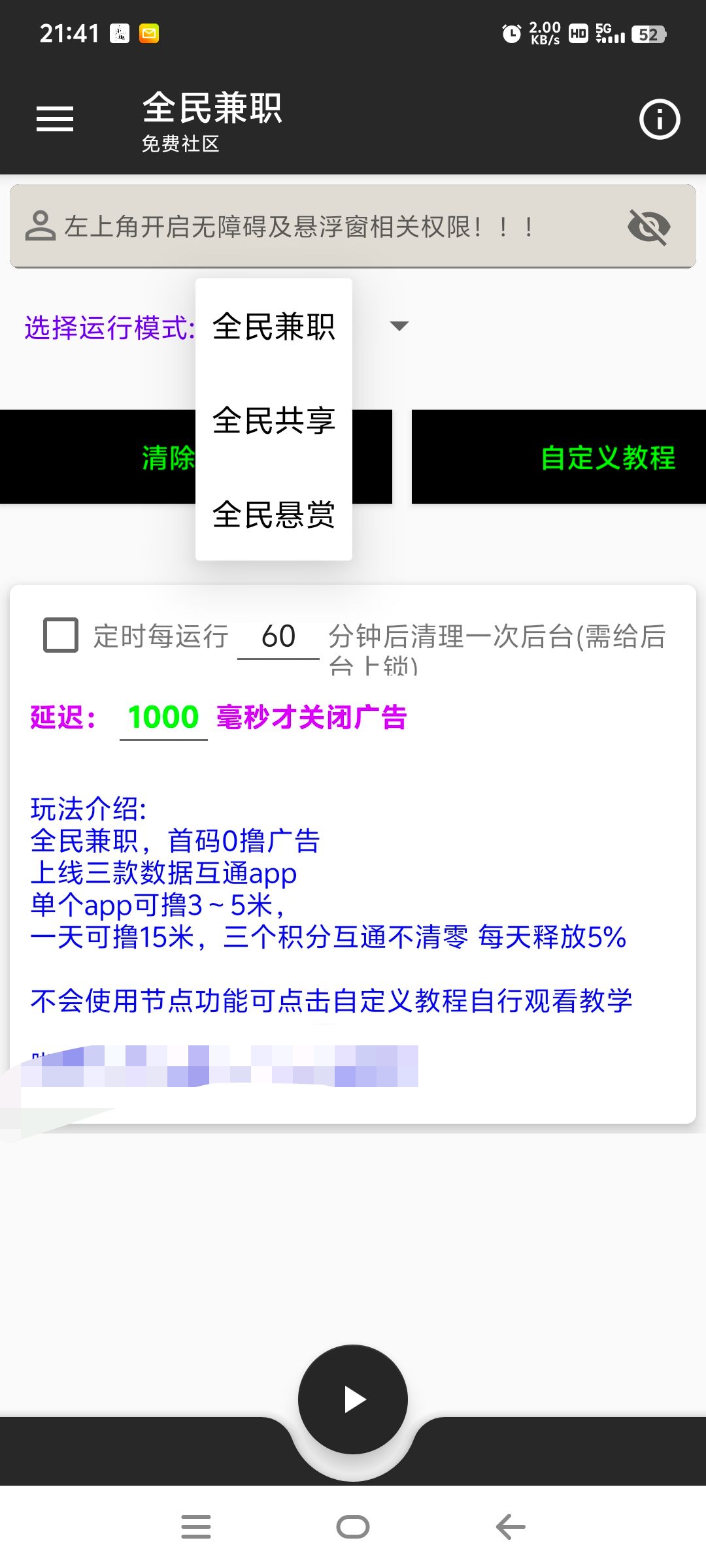 • 🌐 全民悬赏+兼职共享:支持3个平台自动挂机看广告、撸红包,让全民兼职变现成为可能!