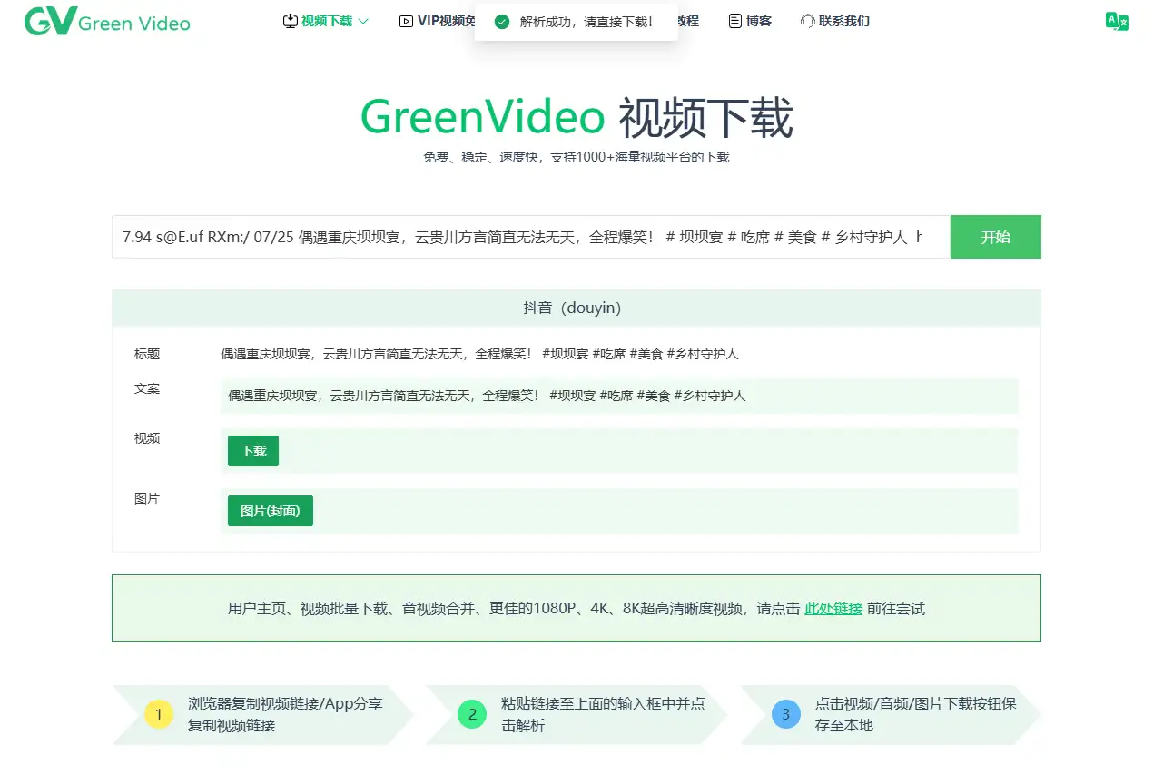 🎬 1000+平台短视频免费下载,高清无水印,无需登录!