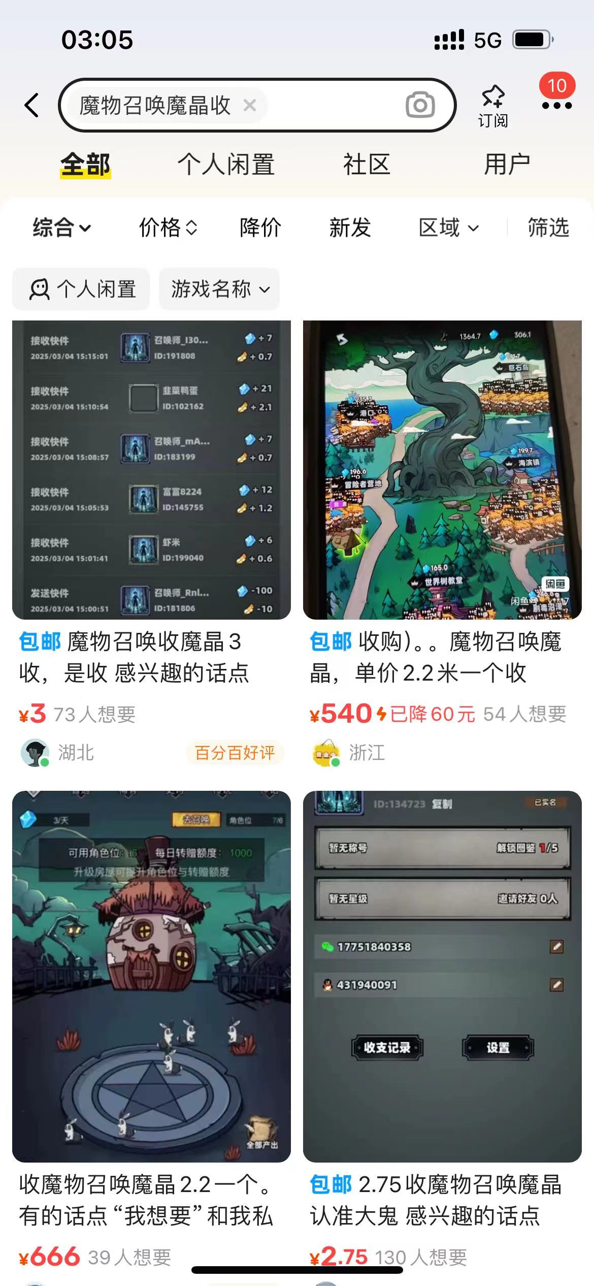 - 💰 转增出售:魔晶可在闲鱼上转卖,收益稳定,每5个魔晶起转增