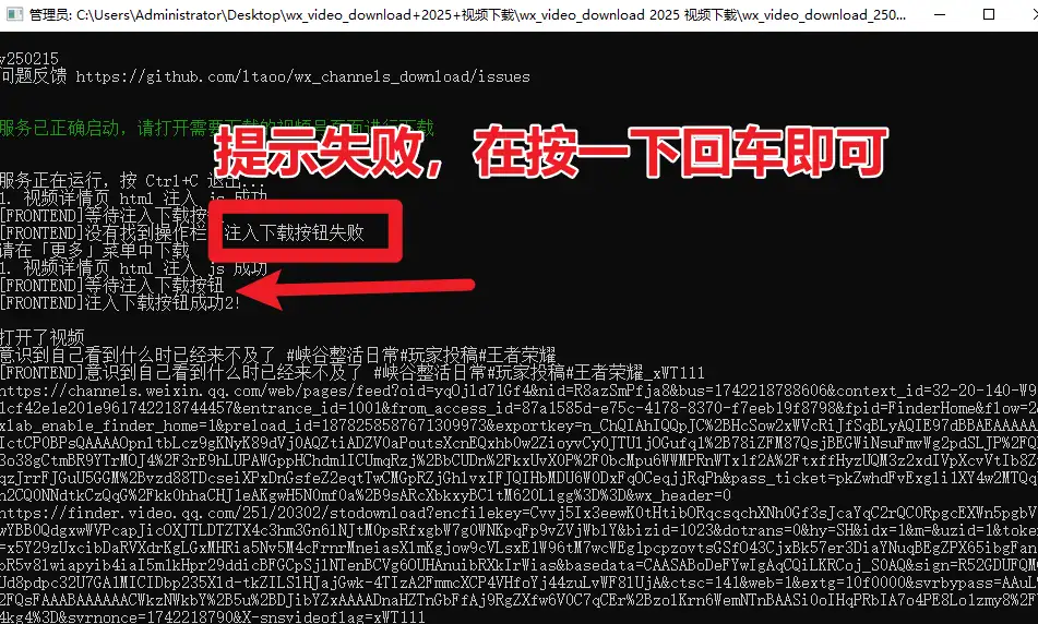 - 🔧 如果提示注入失败,别急!先打开视频号,播放任意视频,然后命令框内按Enter,注入轻松完成!
