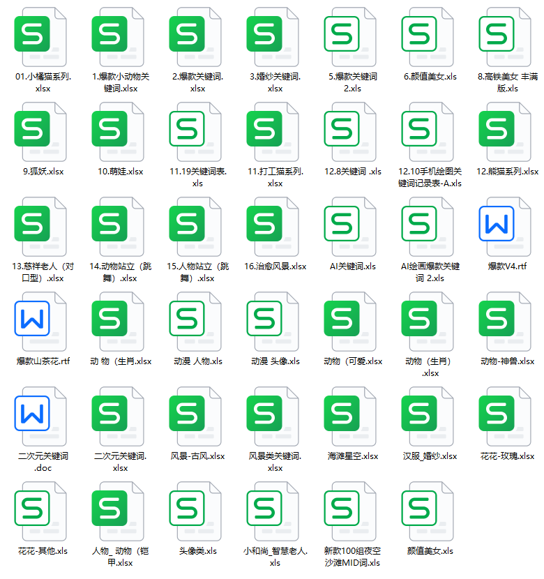 📊 细分领域覆盖:包括叙事抒情、广告音乐、动漫人物、动物可爱、二次元关键词、风景古风、海滩星空、汉服婚纱、花花系列(玫瑰与其他)、人物/动物(铠甲)、小和尚_智慧老人、新款夜空沙滩MID词等多类型关键词,满足不同应用场景需求。