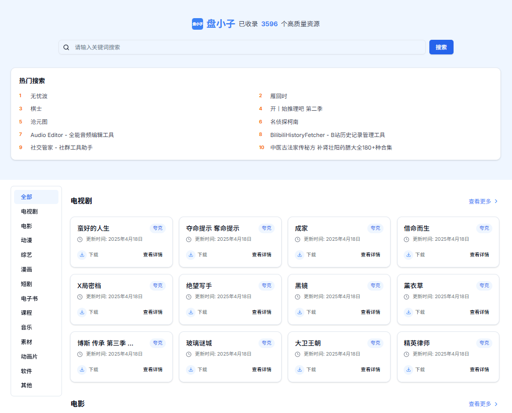 • 📂 根据资源分类进行细分检索,帮助你精准定位电视剧、电影、动漫等感兴趣的资源。