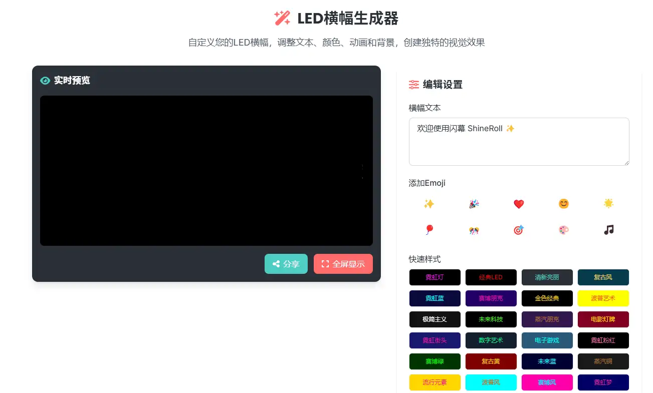 为了让设计出的横幅更具吸引力和活力,工具特别融入了动态 LED 效果。🌠 在设计过程中,用户可以轻松添加闪烁、流动、渐变等丰富的 LED 动态效果到横幅关键元素上。🌟