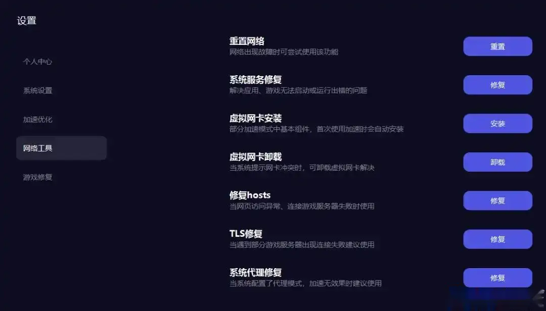 Windows GI 加速器采用智能节点调度技术,实现了与 Steam、Epic 等 12 个主流游戏平台以及 PS5/Xbox Series X/S 等主机设备的无缝衔接。它覆盖全球超 5000 款热门游戏,让玩家无论身处何地,都能享受到流畅的游戏体验。不同于常规加速器的单一功能设计,该软件创新性整合了网络异常检测系统,提供包括 DNS 重置、HOSTS 修复、TLS 协议升级等 8 大网络维护模块,全方位保障玩家的网络稳定。