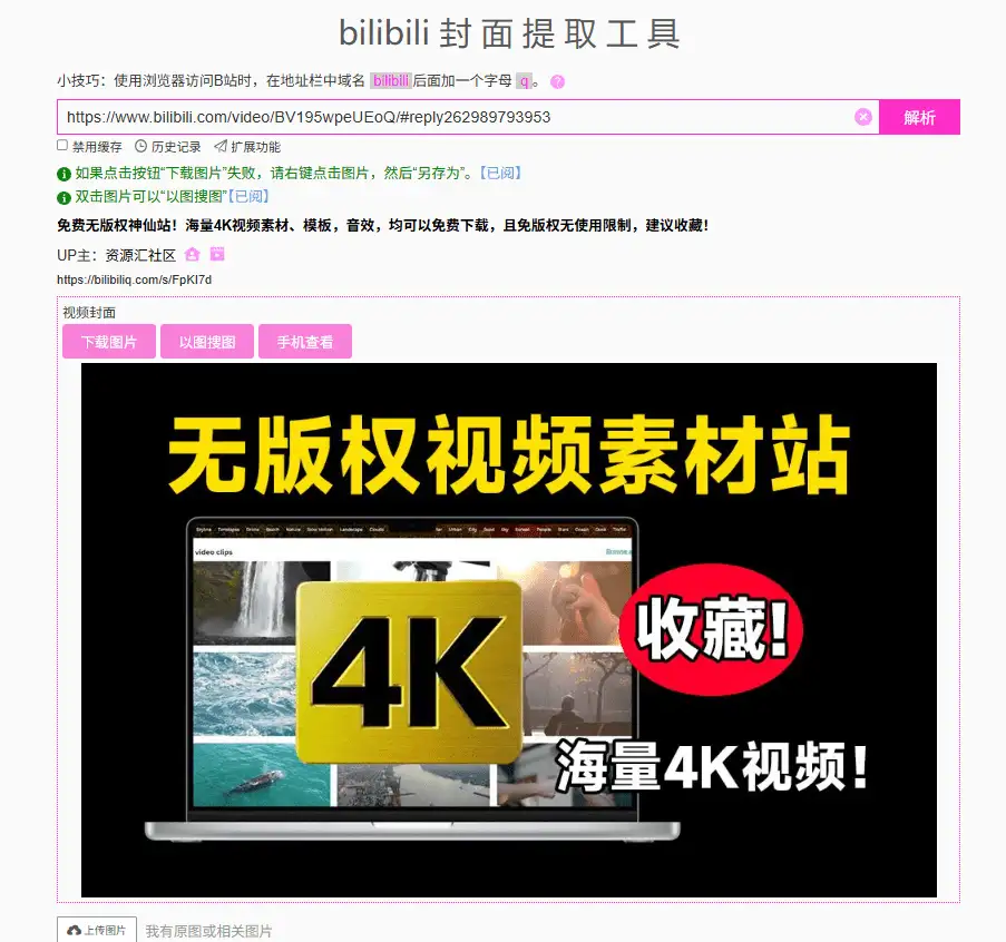 该工具基于B站开放接口深度开发,采用CDN加速技术保障访问速度,确保用户能够快速获取封面。独创的双重解析引擎可兼容新旧版页面结构,无论B站页面如何更新,都能稳定解析封面,为用户提供持续可靠的服务。