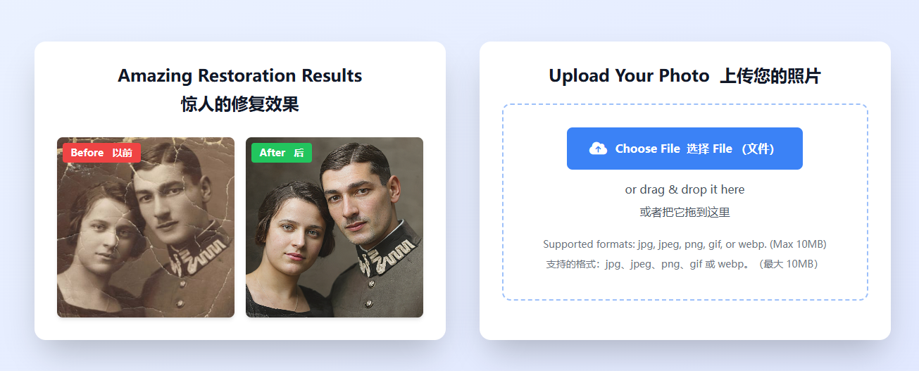 使用我们的 AI 修复老照片服务,只需几个简单步骤就能恢复您珍贵的旧照片: