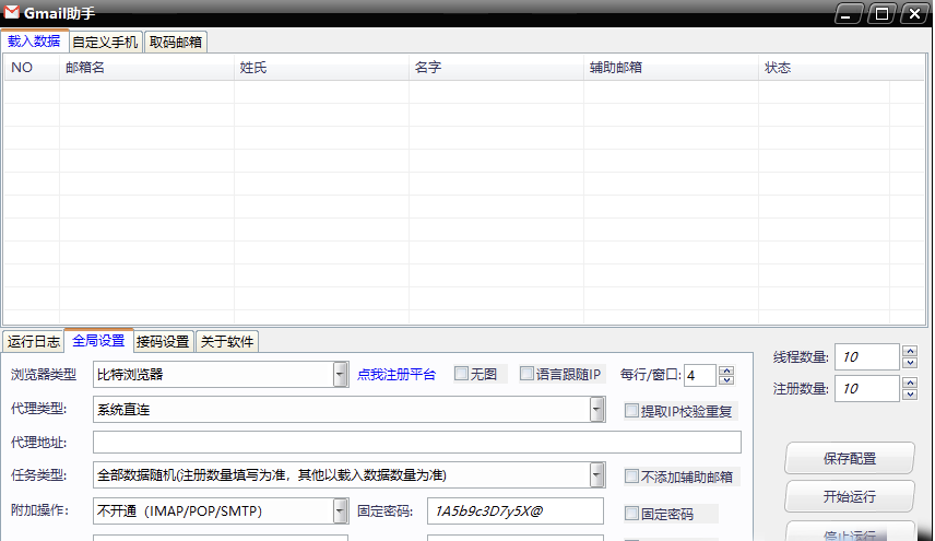 - 自动化注册:一键启动,无需人工干预,即可完成谷歌邮箱账号的批量注册。