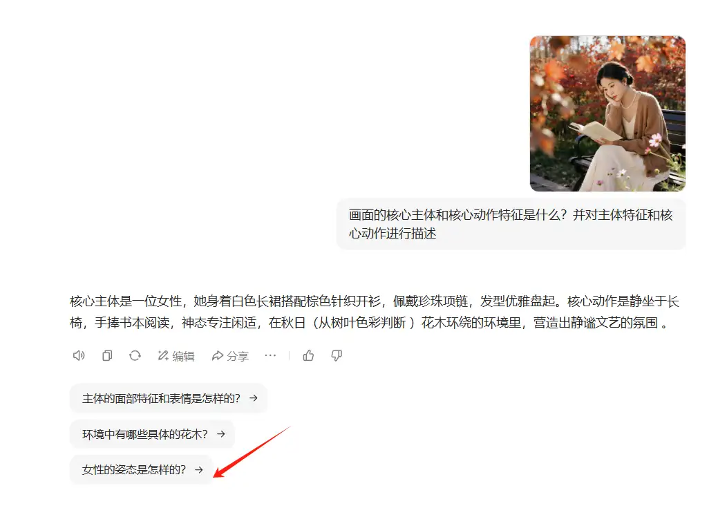 早上整理手机相册时,我偶然翻到一张之前保存的AI画作——秋日午后的公园场景,长椅上一位漂亮女子正专注地翻阅着书籍。恰巧,公众号后台有粉丝朋友提出了类似的问题:“看到喜欢的画想模仿,怎么把画面转成提示词?”这正好给了我一个绝佳的实例,来演示如何通过“核心要素拆解法”进行提示词反推。