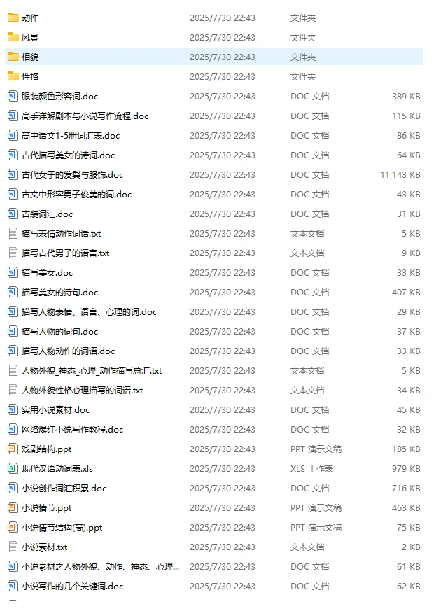 此外,合集还大范围涵盖了小说写作教学的内容,从基础写作技巧到高级叙事手法,从人物塑造到情节设计,为你提供一站式的小说创作学习体验。借助AI技术的力量,这些模板与素材更加智能化、个性化,能够根据你的创作需求进行灵活调整与优化。