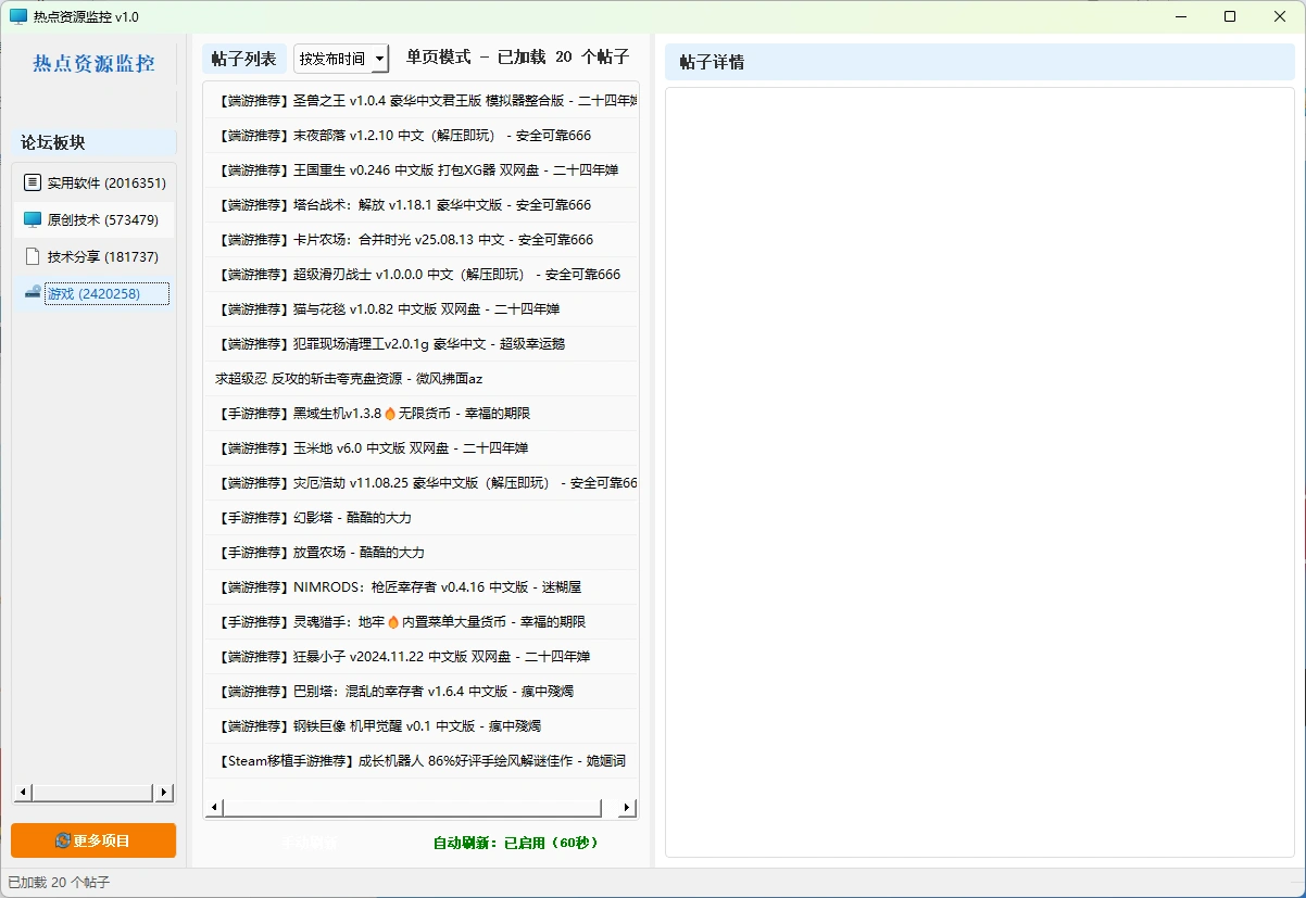 全网论坛资源监控神器:每分钟自动更新,轻松获取热门软件与游戏工具