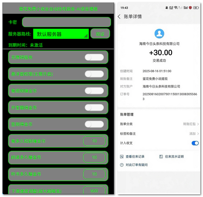该项目的脚本功能十分强大,不仅支持自动看短剧、自动开宝箱,还能自动看广告、自动阅读书籍以及自动听书,全方位满足用户的多样化需求。而且,这一挂机项目还配备了语音日志功能,全网首发,让用户随时掌握项目动态,操作更加便捷。