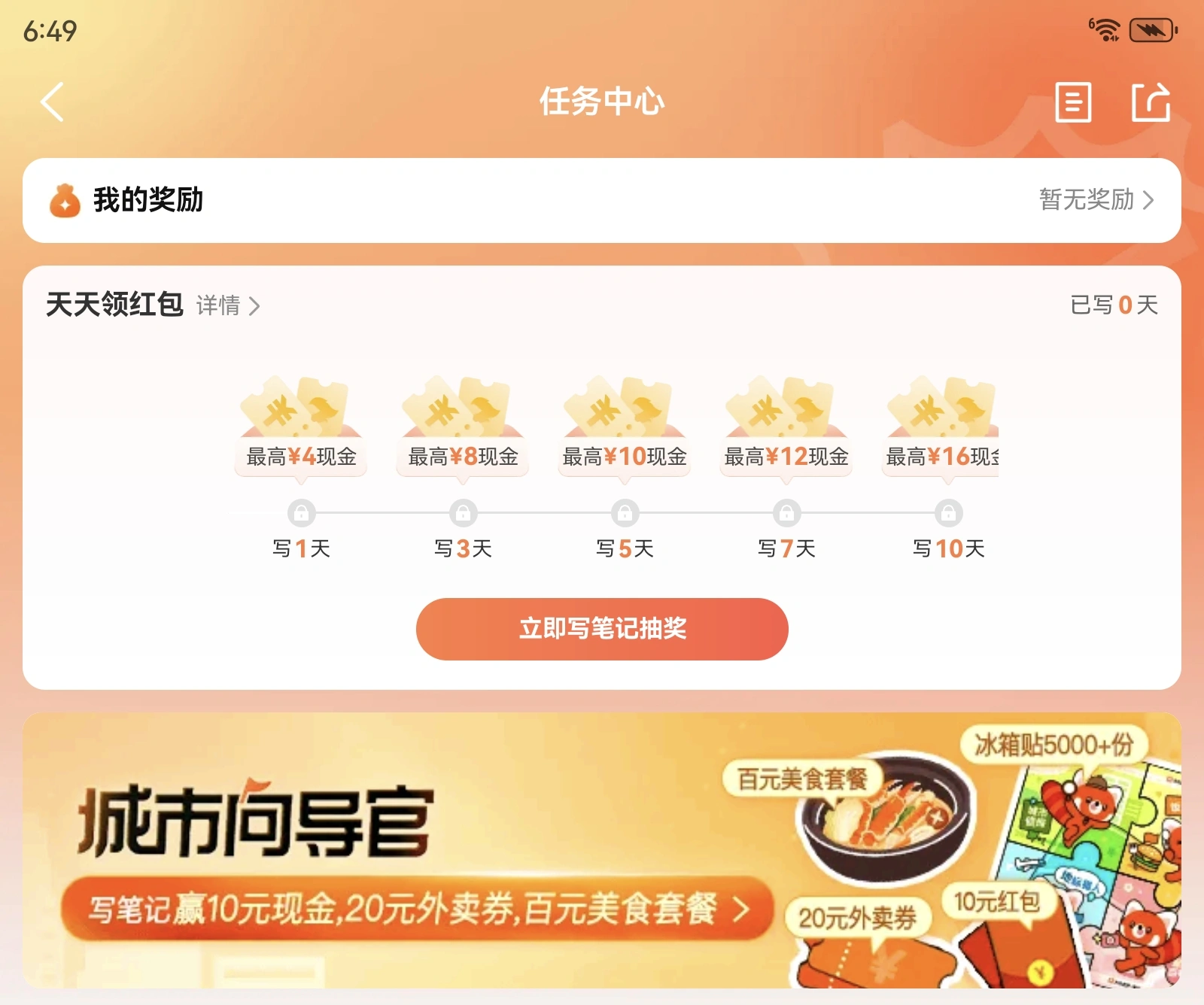 大众点评针对部分用户推出创作评价得50元红包活动,用户在APP搜索“任务中心”,按要求每天上传2张图、写20字以上认真评价,连续10天且审核通过就能拿50元红包,操作简单易上手。