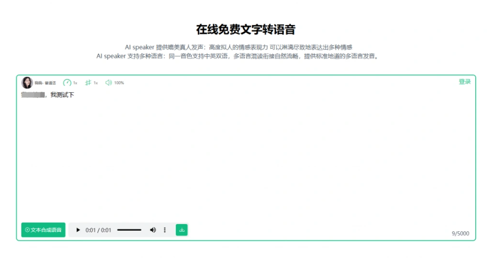 - 双语自由混读:同一音色可实现中英双语无缝衔接,有效解决了多语言配音的尴尬问题。对于从事跨境内容创作的创作者来说,无疑是如虎添翼,能够更加游刃有余地完成创作。