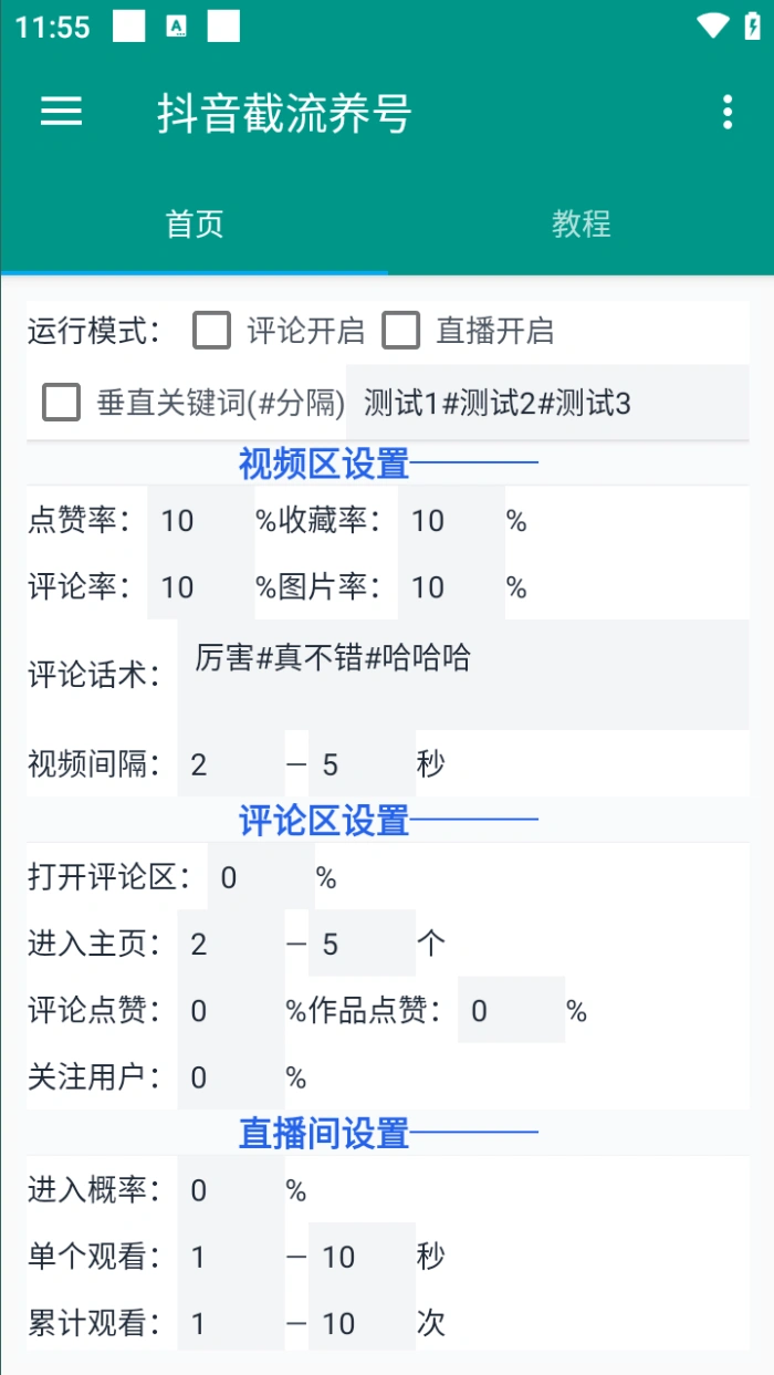 在直播板块,脚本同样表现出色。同样以随机概率打开直播功能,可进行直播评论、直播等待等操作,并且能够设置直播数量,帮助运营者更好地把握直播节奏,吸引更多观众。