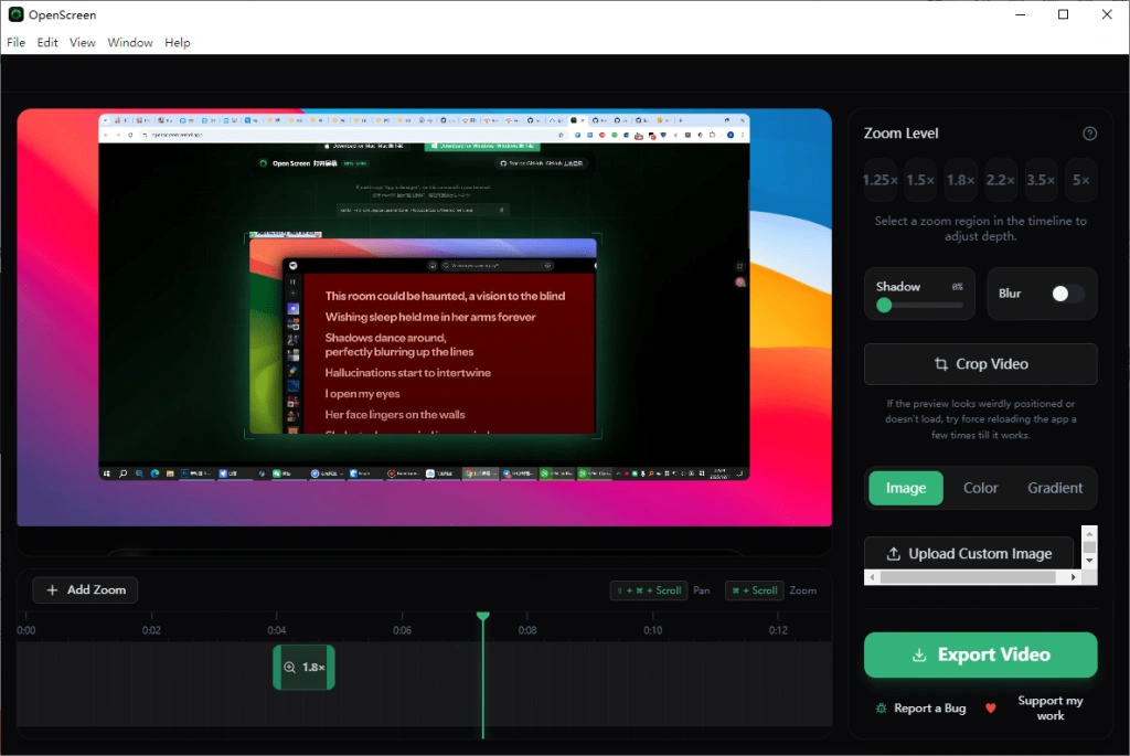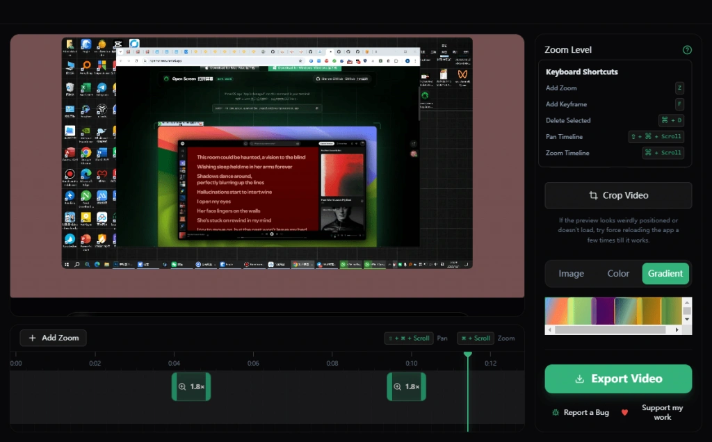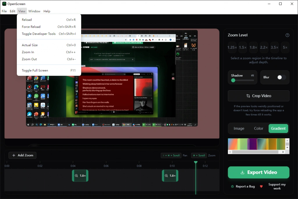 它的操作十分简便,录制完视频后,软件会自动打开编辑窗口,无需繁琐的步骤,即可快速进行局部放大效果的添加。而且,它还支持快捷键操作,大大提高了视频编辑的效率,节省了创作者的时间和精力。对于经常进行视频演示的创作者来说,Openscreen无疑是一款不可多得的实用工具。