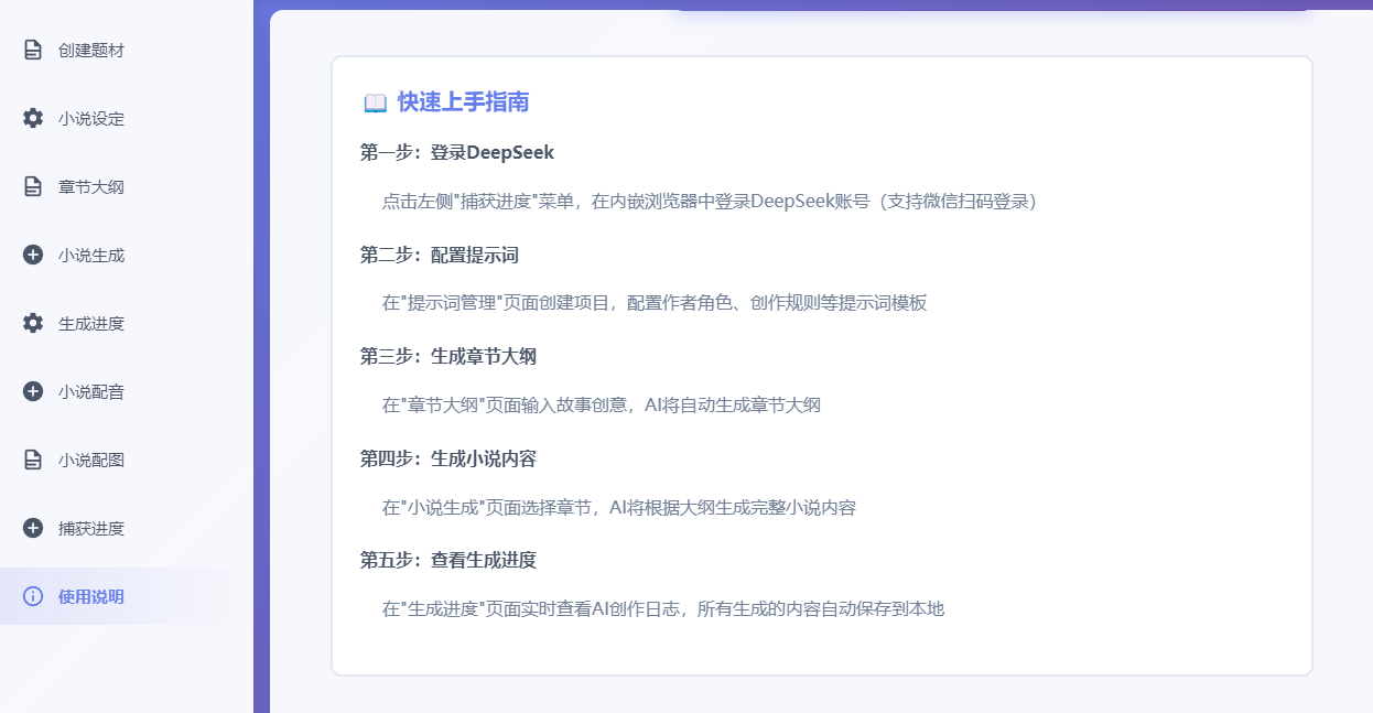 AI小说生成器是一款基于Electron开发的桌面应用,它巧妙地集成了DeepSeek网页版,实现了完全免费的AI小说创作功能。无需购买昂贵的API,也无需高配置的硬件支持,只需一个DeepSeek账号,你就能随时随地开启创作。这款工具特别适合那些多年未曾接触小说创作,或是对这一领域不太了解的朋友们,它将成为你探索AI写作世界的得力助手。