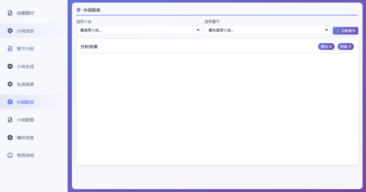 - 生成小说内容:选择章节,AI根据大纲生成完整小说内容,让你的创作一气呵成。