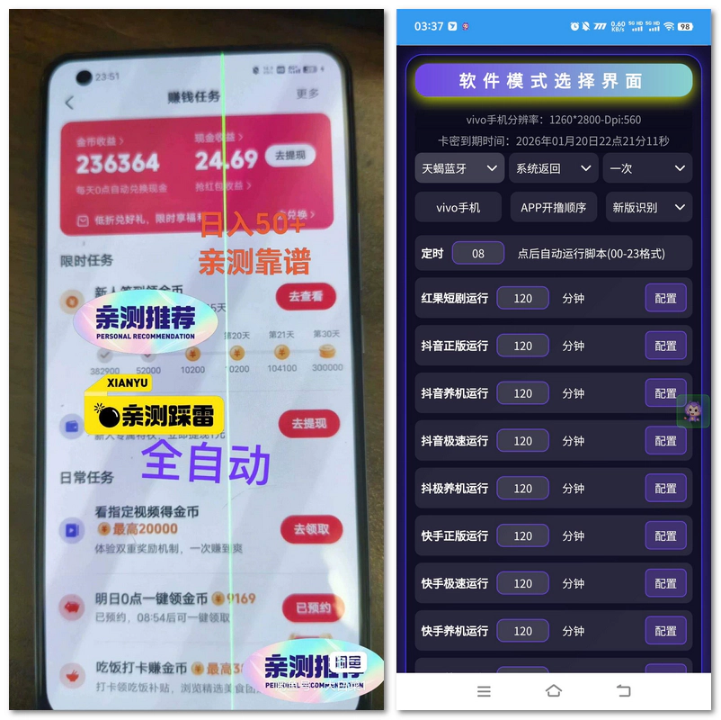 总结:外面收费999的天蝎手机掘金合集,拥有20 +个平台、20 +个挂机等项目,将近40个软件支持项目,附带自动养号开宝箱功能,性价比高且后期自动更新。包含月卡软件和使用教程,支持安卓、鸿蒙手机,虽有一定设备要求,但仍是手机掘金的优质选择。