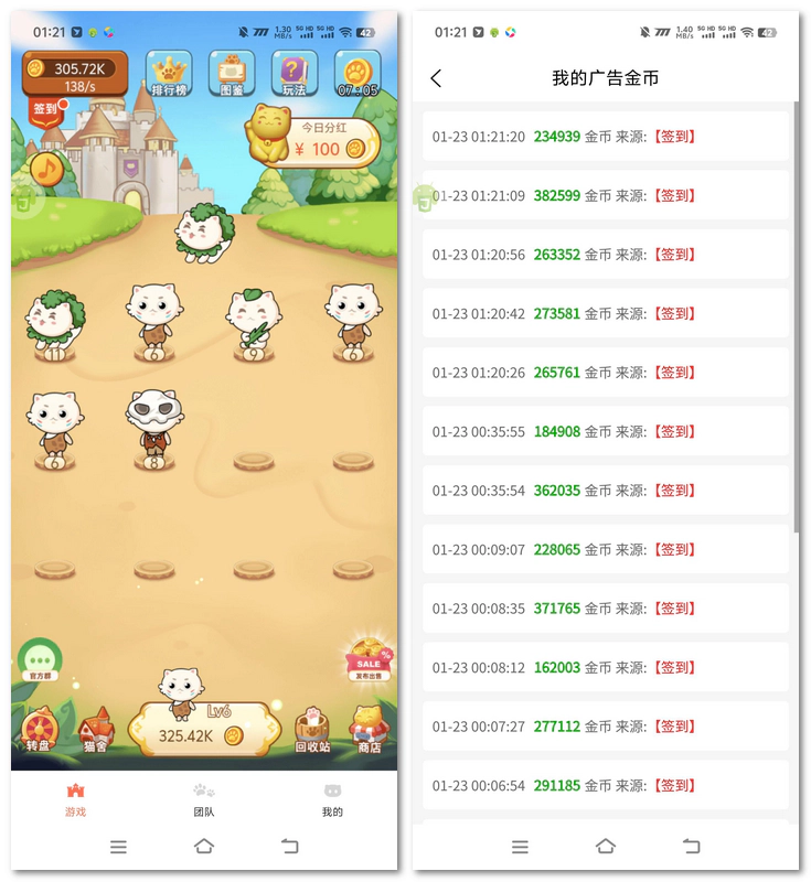 这个项目的原理和大家熟知的陀螺世界类似,玩家需要通过不断合成来提升等级,最终合成满级为31级。不过,它有一个独特的优势,当达到21级时,就可以参与分红啦。每天的分红金额根据用户观看广告的数量来计算,大约在3 – 388元之间随机分配,而且提现门槛超低,仅需0.3元即可起步。