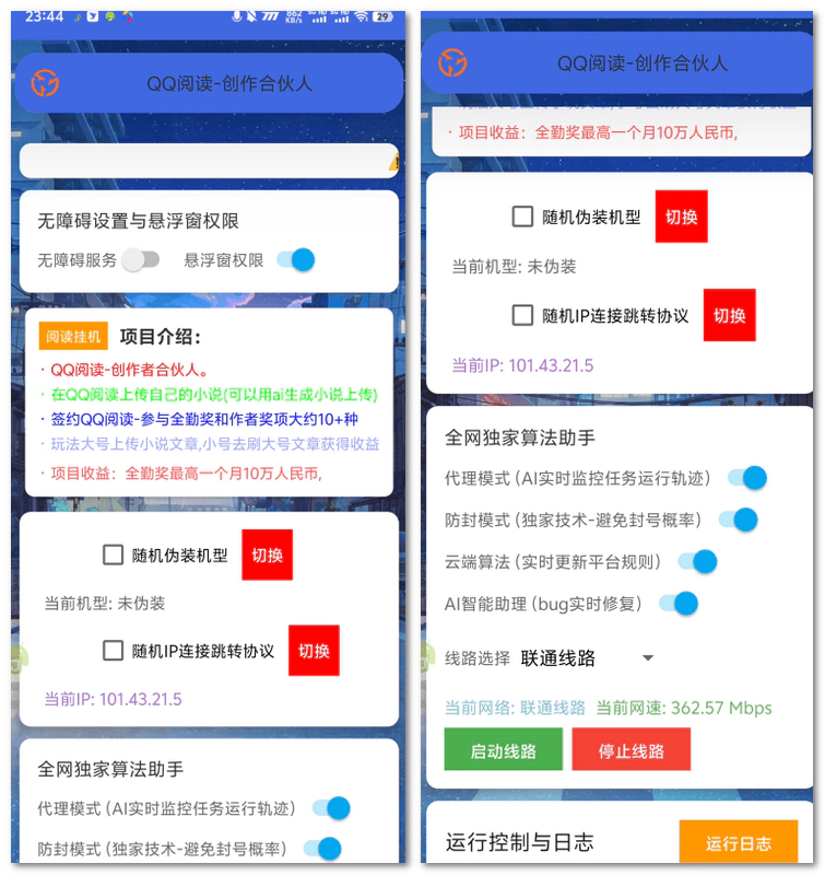- 辅助:配套提供阅读助手+使用教程,实现自动/半自动挂机,新手10分钟学会。