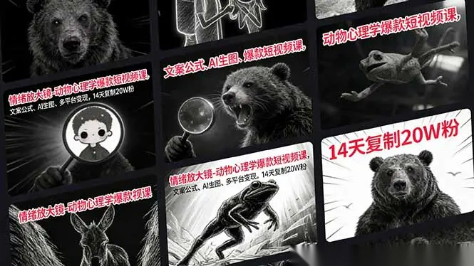 “情绪放大镜”动物心理学课,本质上是一套“心理学深度+短视频实操”的双料解决方案。它解决了创作者“有知识没流量”的痛点,通过“动物+心理学”的差异化定位,配合从文案到剪辑的全流程SOP,即使是零基础新手,也能快速复制出高传播、高转化的爆款短视频,实现知识付费与流量变现的双重突破。