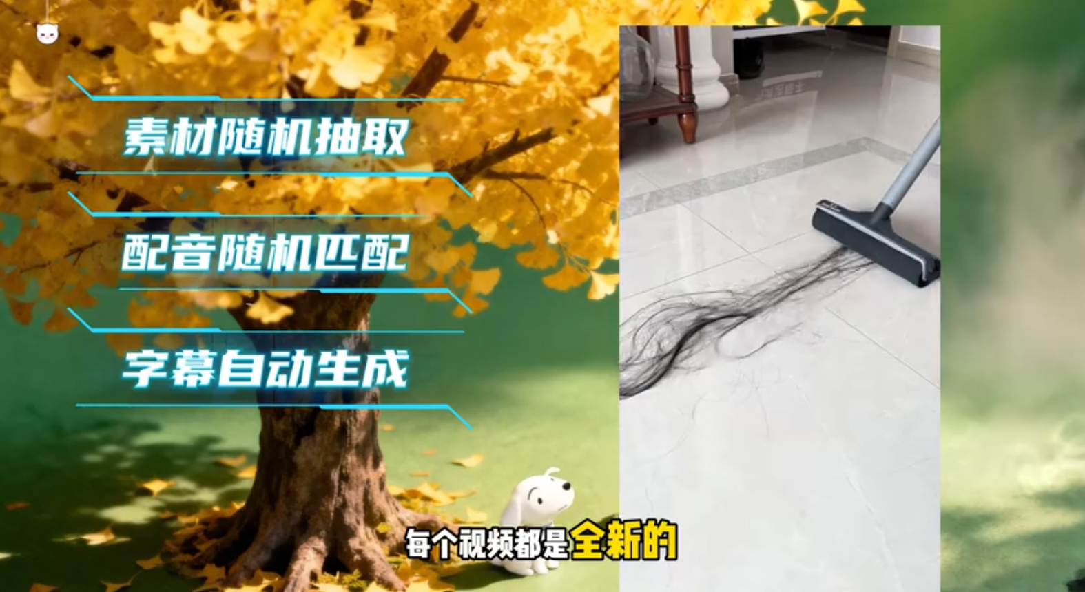 - 声音匹配:随机搭配一条AI配音+一首BGM;