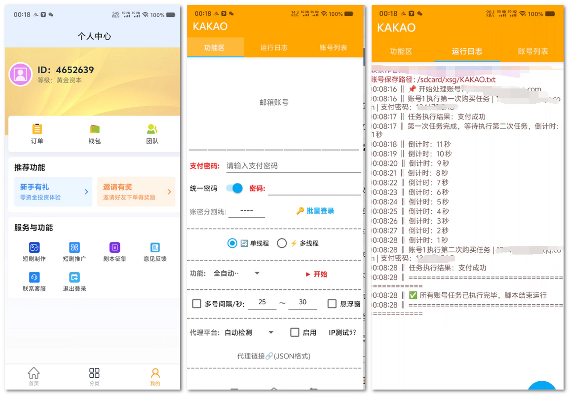 该项目利用KAKAO协议软件,通过批量注册账号并每日签到获取USDT收益,核心优势是门槛低、可矩阵化操作,适合拥有安卓设备或云手机的站长/兼职党。以下是关键实操细节: