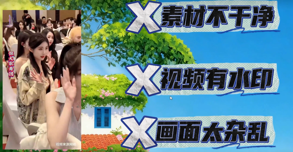 处理前:素材带水印、画面杂乱、尺寸不统一,根本没法直接用;