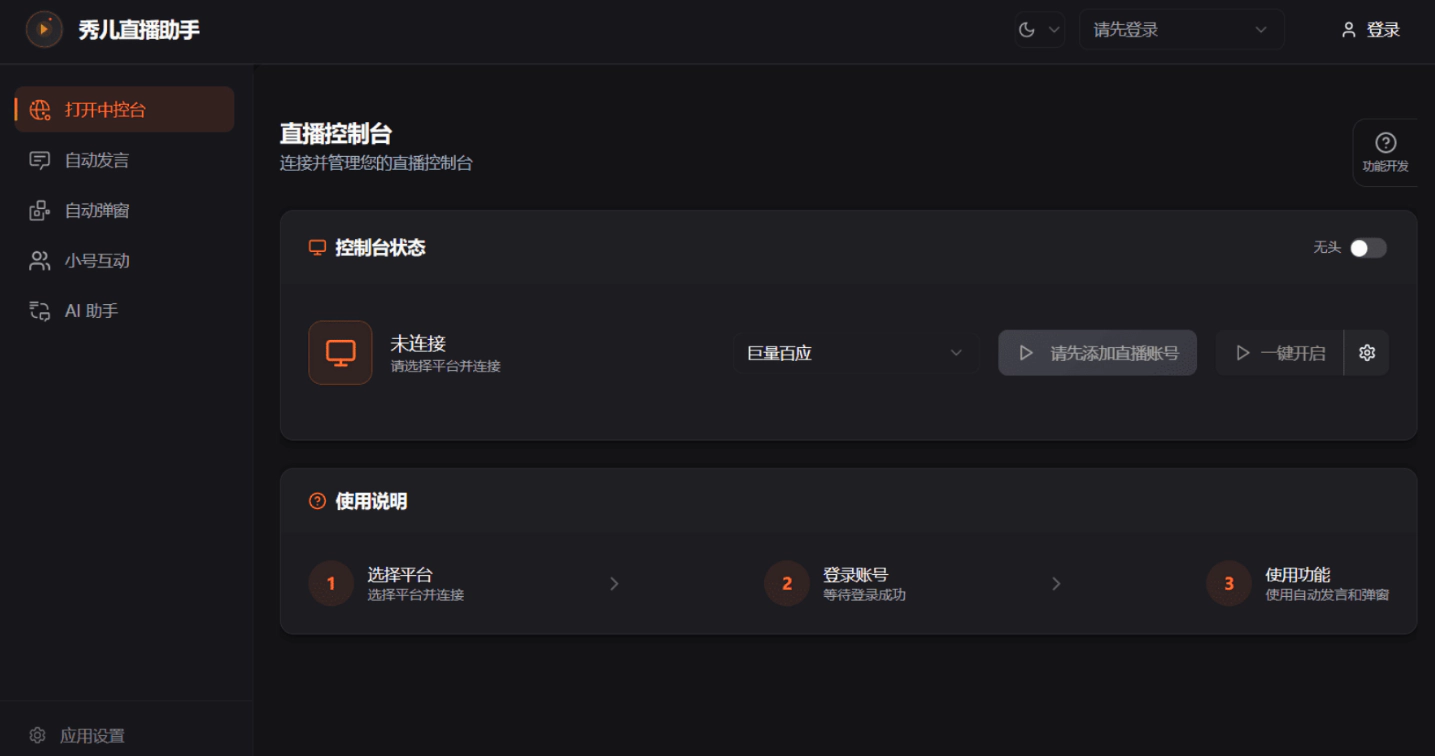 - 独立运行:支持多组账号同时登录,各直播间策略独立,互不干扰,规避封号风险。