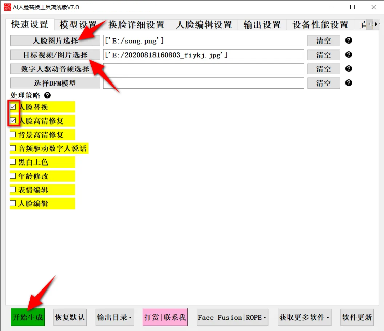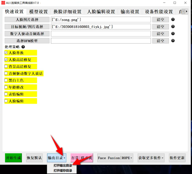 它支持图片和视频人lian替换,素材名和路径也不能带中文,记得开启人lian替换和人lian高清修复。
